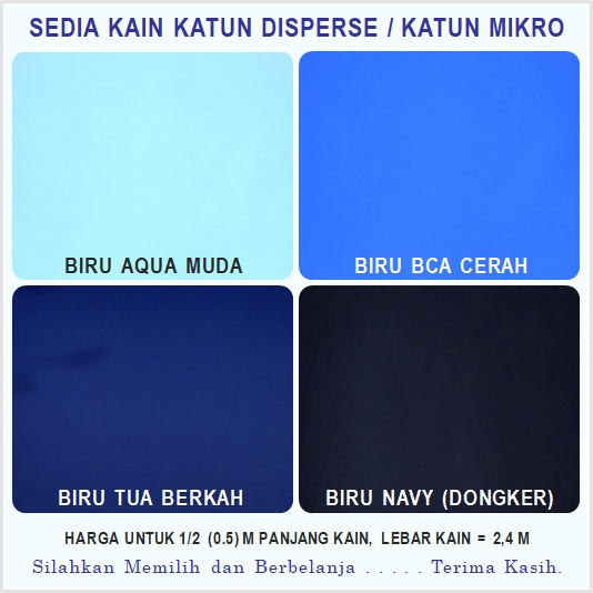 Jual Kain Katun Mikro Warna Biru Aqua Muda Biru Bca Cerah Biru Tua Berkah Dan Biru Navy Pekat By Ddwhijab Ddwshop Kainmura Kainbagus Shopee Indonesia