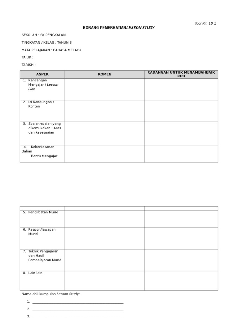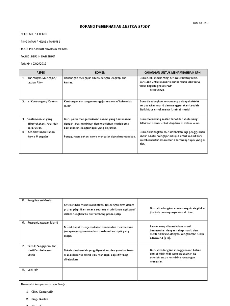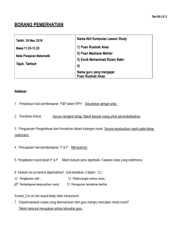 Tool Kit Ls 3 Borang Pemerhatian Pdf